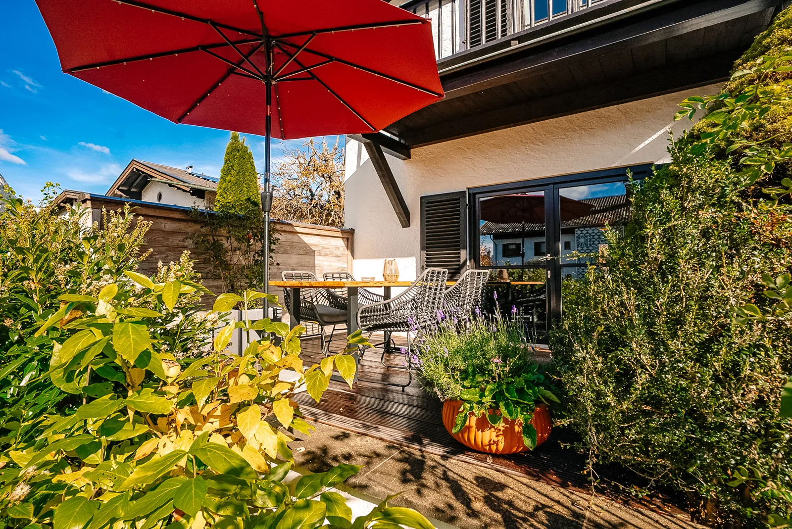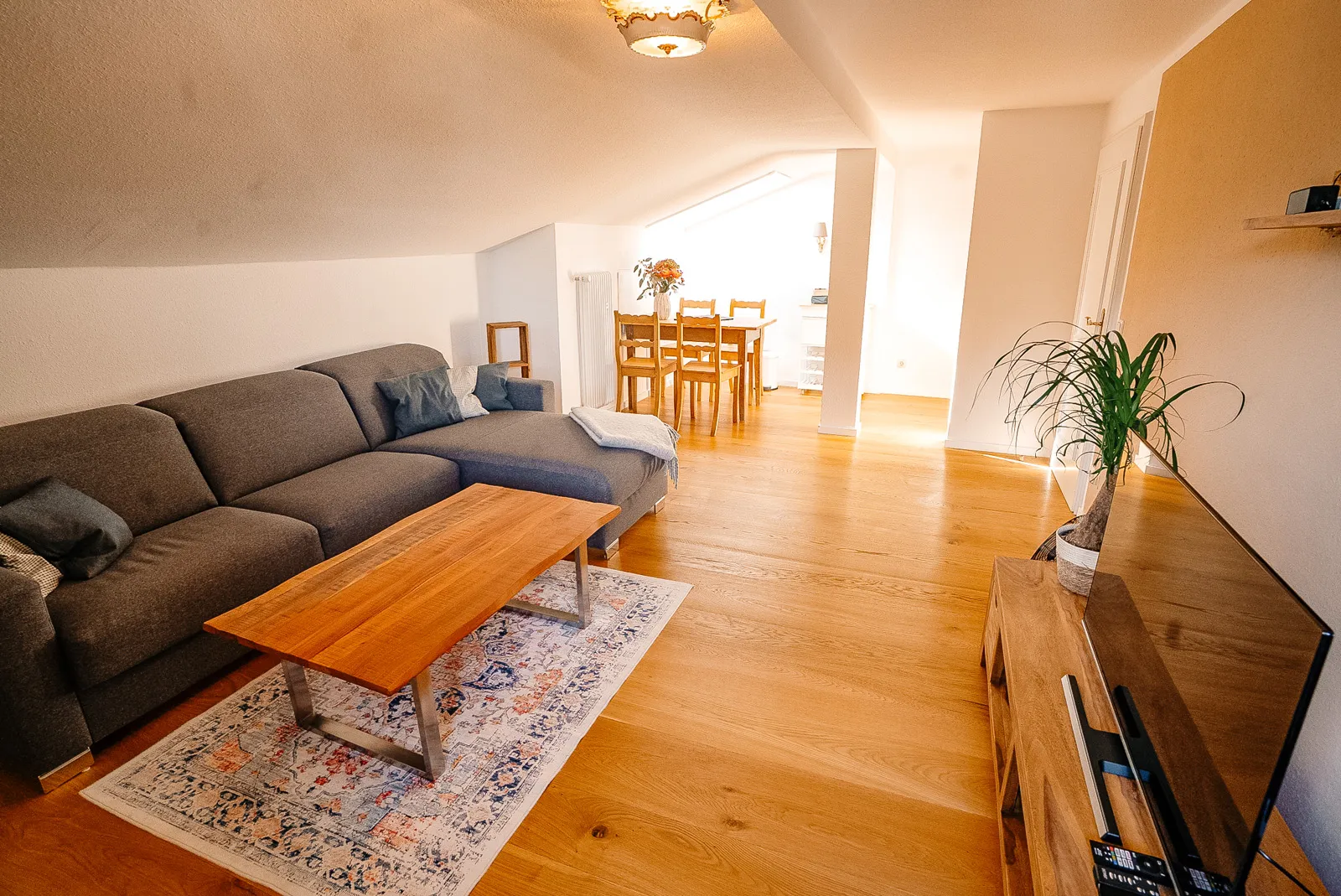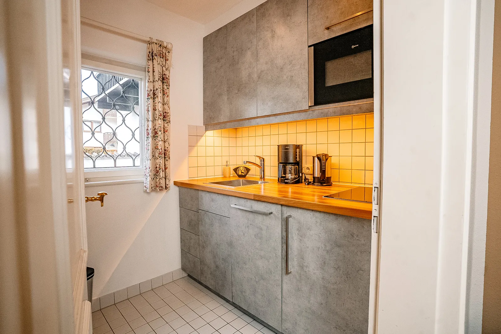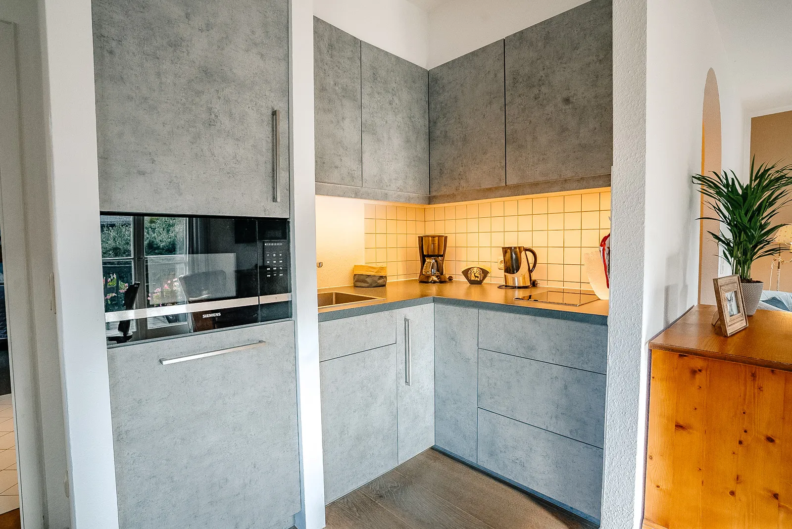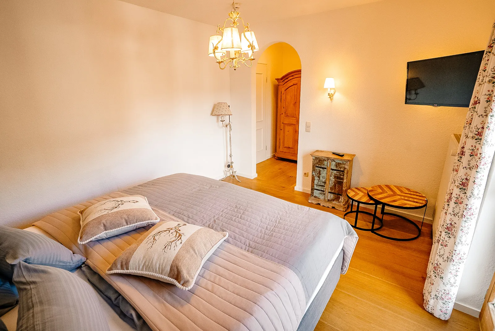 Our vacation apartment No. 1 has its own south-west facing terrace with sun until the evening. It has a large living room with dining area and a separate kitchen.