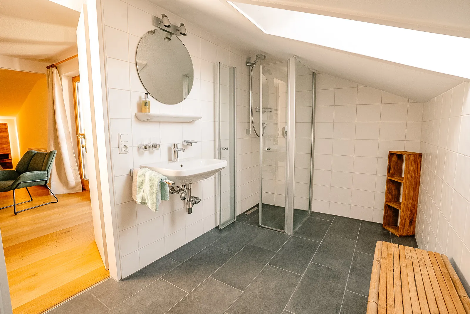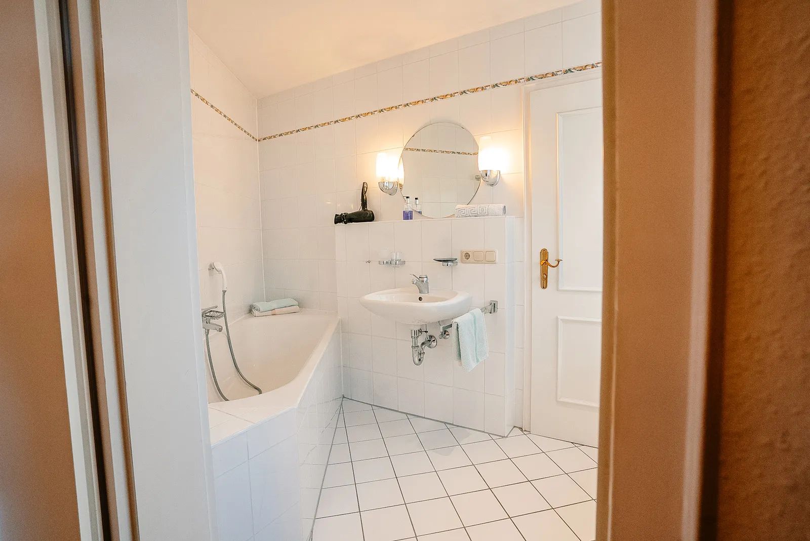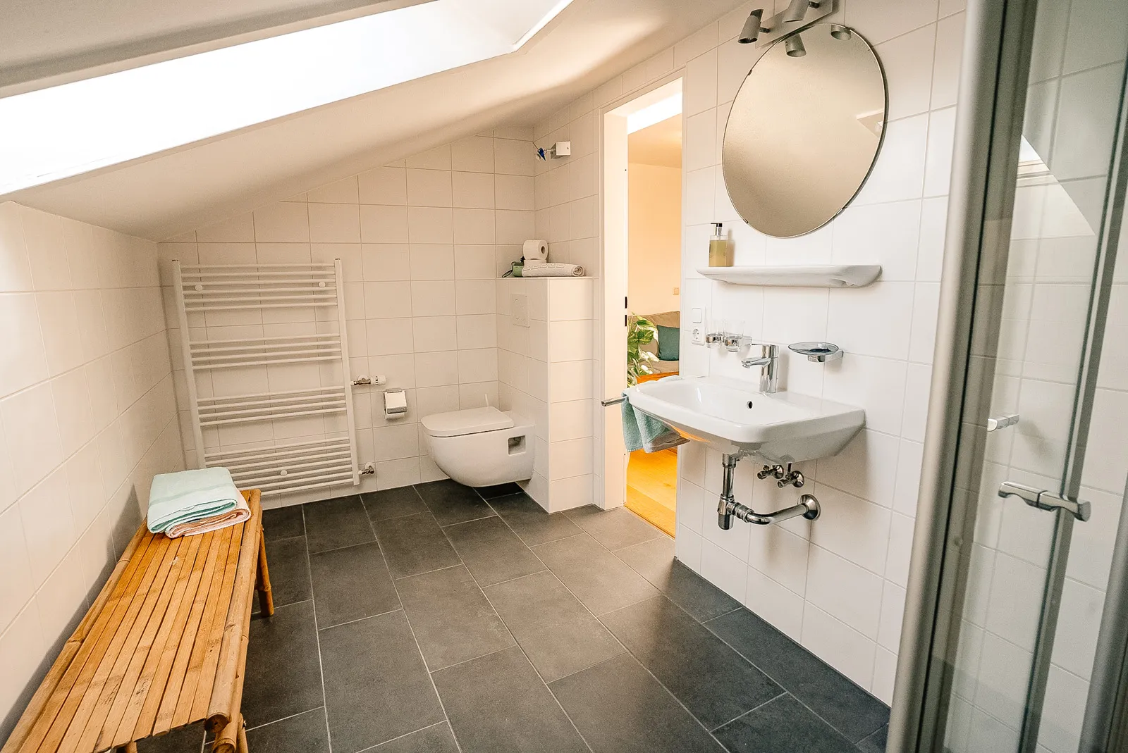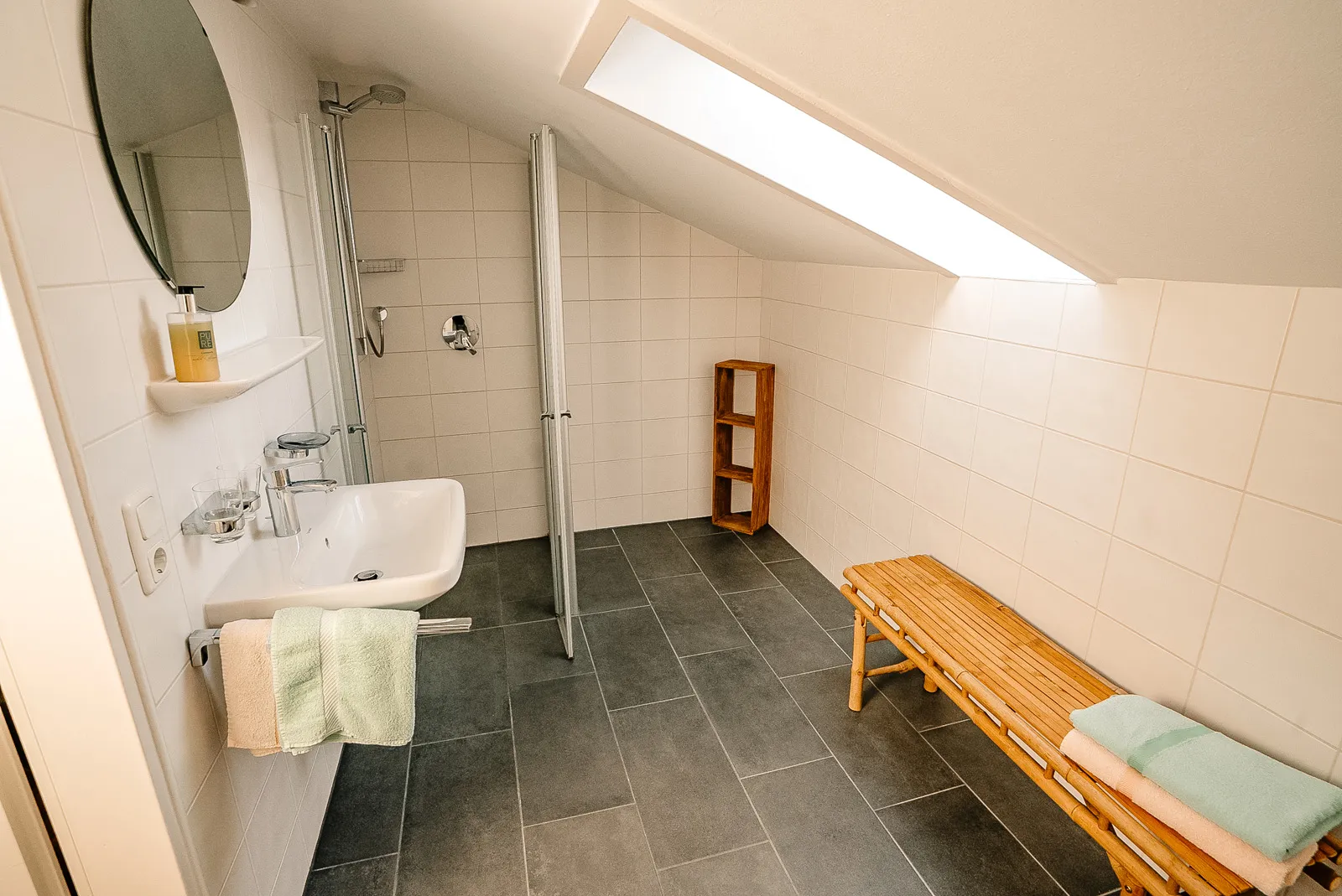 Our vacation apartment No. 5 with a bathroom with bathtub is located in the same hallway.